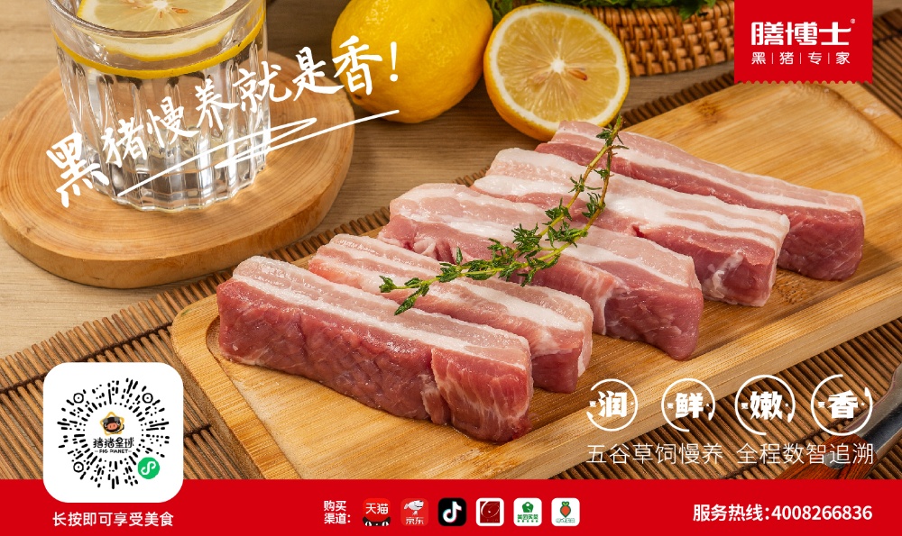 這種黑豬肉味道鮮美香醇,色澤自然細膩,肉質緊實Q彈,還富含ω3不飽和脂肪酸和膠原蛋白,特別深受當代年輕人的喜愛。